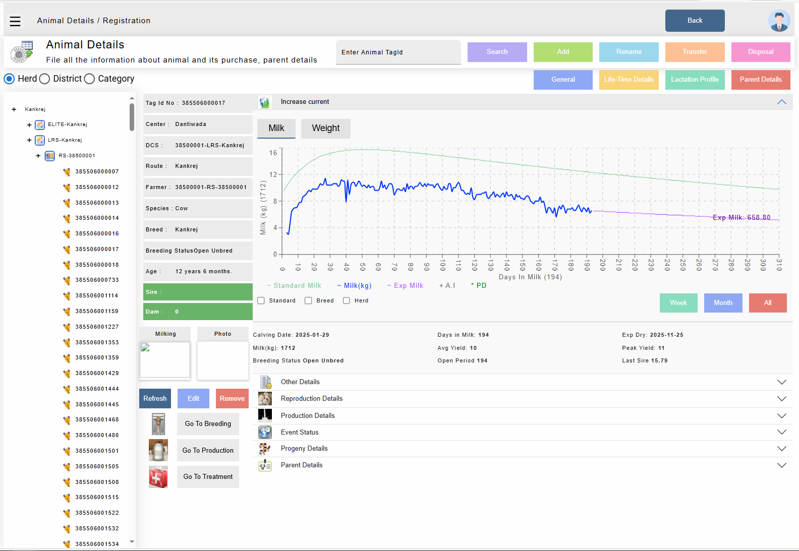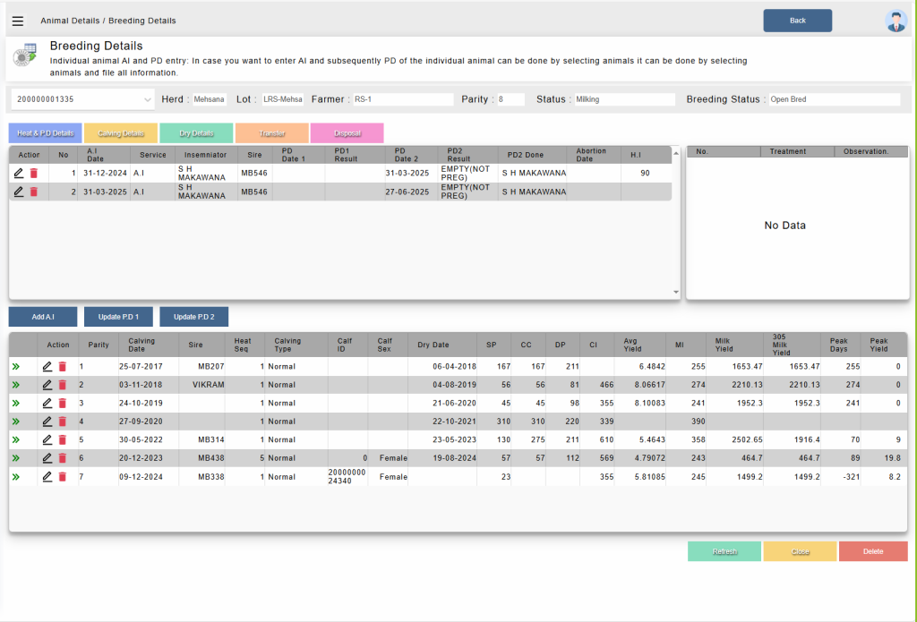 The Cow Animal Profile Screen is the central digital record for each cow in your herd. It provides a complete 360° view of the animal’s identity, health, reproduction, and productivity. This screen allows farmers, vets, or farm managers to make quick, informed decisions at a glance